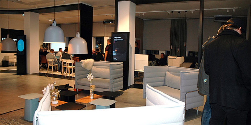 Den praktischen Bezug liefert der Showroom mit 21 Szenarien. Dabei schlüpfen die Besucher wahlweise in die Rolle eines freien Mitarbeiters, einem frischvermählten Pärchen oder der Familie. Um ein möglichst realistisches Umfeld zu schaffen, befinden sich die vernetzten Geräte und Produkte in unterschiedlichen, aufwändig gestalteten Wohnwelten. Über Smart-Buttons, programmierbare Sensorschalter, lassen sich in jeder Wohnwelt vorprogrammierte Szenarien abrufen. So werden bestimmte Begebenheiten aus dem Alltag simuliert und das Zusammenspiel vernetzter Technologien sichtbar dargestellt.